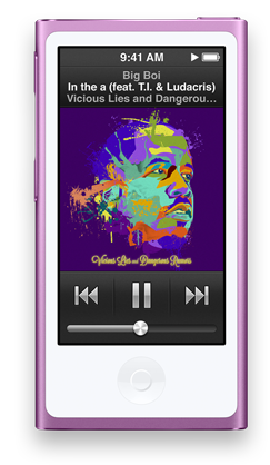 Tap to play your favorite songs. Or entire albums. Or everything by one artist. You can even browse by genres or composers. Flip through your music: Album art looks great on the bigger screen. Or to keep things fresh, give iPod nano a shake and it shuffles to a different song in your music library.